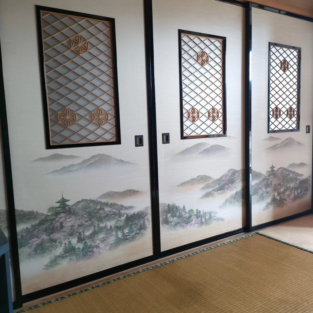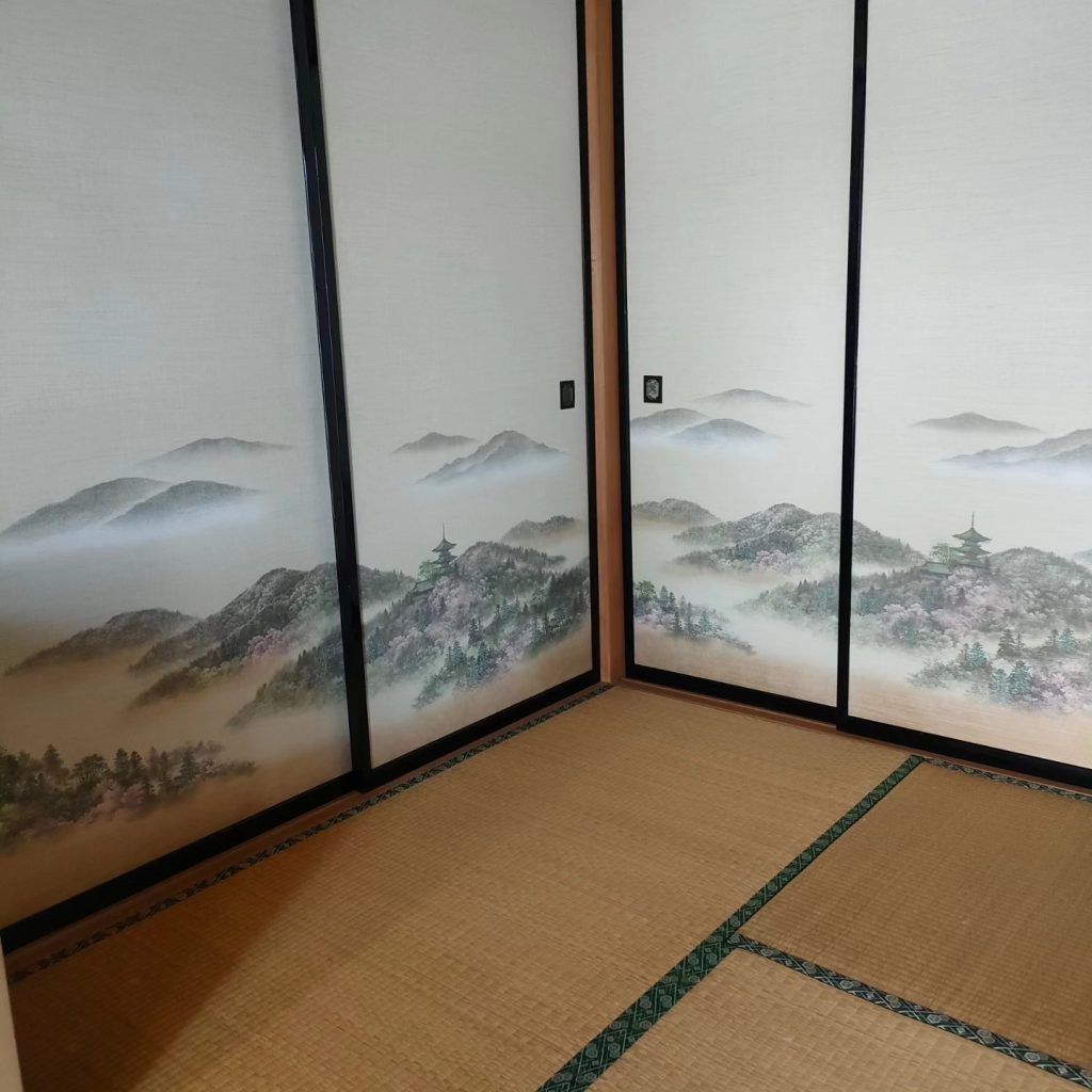 今回の新しく張る襖紙は2枚で1つの絵になるタイプで、久々にお城が入った絵を張らせて頂きましたが幻想的で張り替えながら自分でも見入ってしまいました!